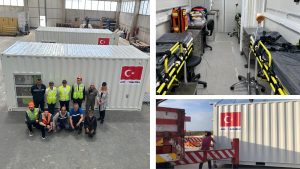 GAMA Ticaret Genel Müdürü Hasan Namal, Üretim ve Tasarım Müdürü Sinan Dülger ve Dış Ticaret ve Satış Yetkilisi Başak Ustanıl’ın önderliğinde tüm GAMA Ticaret ekibi tarafından özenle üretilen mobil sağlık birimlerimizin deprem bölgesindeki vatandaşların temel sağlık ihtiyaçlarının kesintisiz karşılamasını umuyor ve hayırlı olmasını diliyoruz.